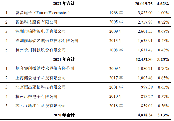 《招股书》显示,云汉芯城前五大客户,在报告期内出现频繁变动,几乎是走掉一批、新来一批。并且,报告期内,前五大客户采购金额占比均不超过5%,这就说明,云汉芯城几乎所有客户,都是中小规模客户,而非大厂大牌。
