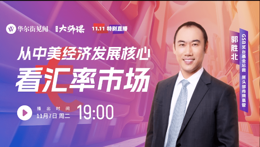 11月8日,GSB奖台基金总裁,原头部券商高管郭胜北在华尔街见闻“11.11大咖会客厅特别直播”中,从中美经济发展核心对汇率市场进行了深入解读,以下为华尔街见闻整理的精华内容,分享给大家: