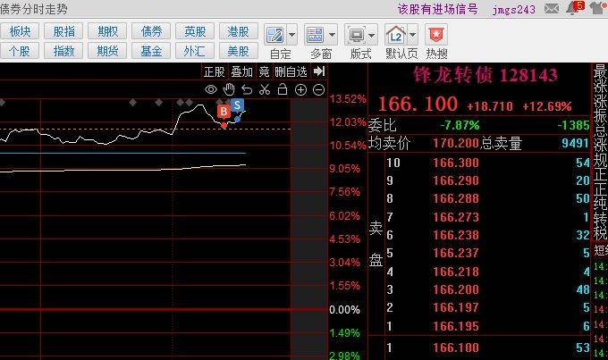 说说今天的行情,昨天我随口玩笑话,没有想到,锋龙主力真的这么搞了,拼了老命顶正股,所不同的是,没有顶一字,这样更好,股债双吃,今天转债正股配合很默契,正股也不再震仓了,转债下午果断加速,我早上卖飞正股,尾盘加了转债,锋龙会不会疯龙?