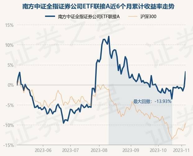 证券之星消息,11月7日,南方中证全指证券公司ETF联接A最新单位净值为1.0464元,累计净值为1.0464元,较前一交易日上涨0.52%。历史数据显示该基金近1个月上涨4.29%,近3个月下跌6.83%,近6个月上涨3.72%,近1年上涨15.88%。该基金近6个月的累计收益率走势如下图: