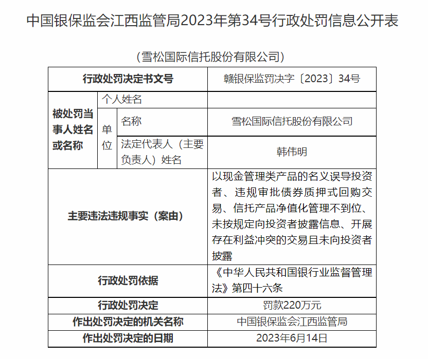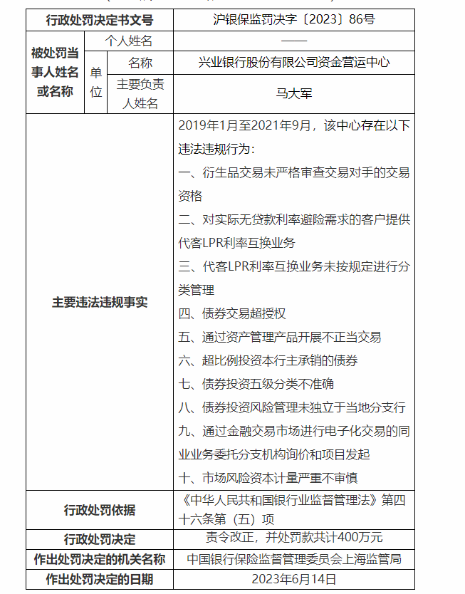 除此之外,超百万的罚单还有:中国银行上海人民币交易业务总部被罚没700万、兴业银行资金营运中心被罚款400万元、广发银行武汉分行被罚款370万元、交通银行武汉青山支行被罚款100万元、江西银行被罚款810万元、渣打银行上海分行被罚没274万元、雪松信托被罚款220万元。