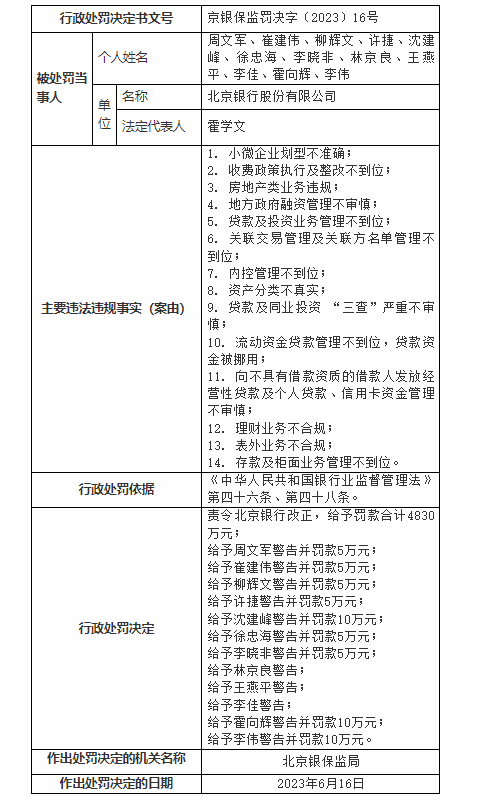 北京银行被北京银保监局罚款4830万元,该行存在如下问题: