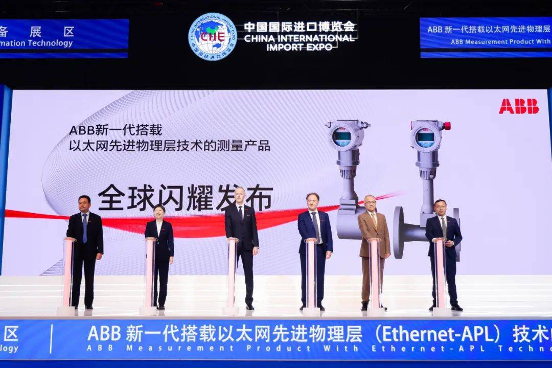 在浦东设立全球最大机器人生产基地的ABB则在进博展台上,正式发布了新一代搭载以太网先进物理层(Ethernet-APL)技术的测量产品。借助新兴的以太网先进物理层技术,测量仪表可无缝集成进工厂以太网,充分挖掘和释放现场数据的资产价值,实现危险区域安全部署、长距离稳定可靠传输,从现场到云端“一网贯通”,推动工业物联网应用落地,加速现代工厂数字化转型。