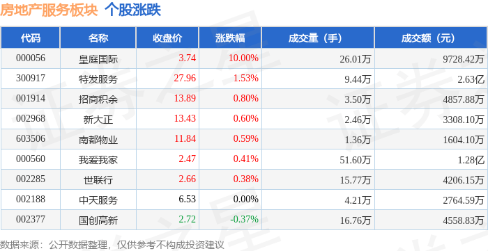 北向资金方面,当日房地产服务板块北向资金持股市值为2.44亿元,减持716.62万元。其中增持最多的是招商积余,增持了14.84万元。减持持最多的是我爱我家,减持了719.65万元。房地产服务板块北向资金持股变动明细见下表: