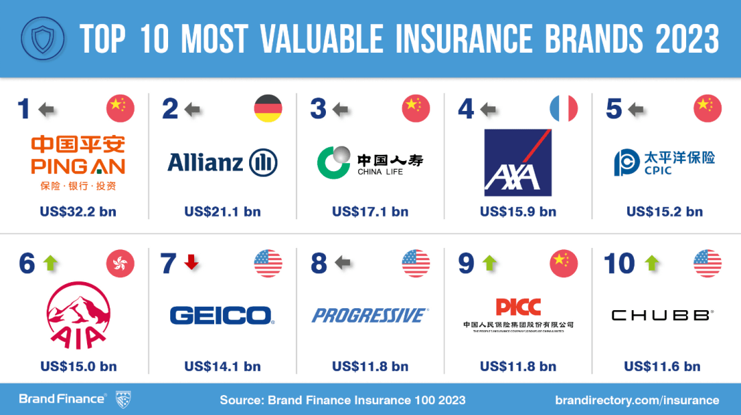 中国平安 第七次蝉联榜首( 2023全球保险品牌价值100强排行榜TOP10)