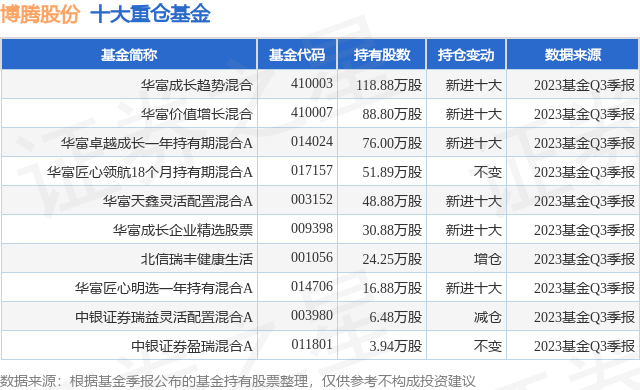 重仓博腾股份的前十大公募基金请见下表: