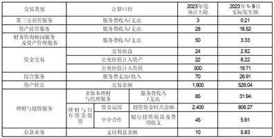 注:本次将原第三方存管服务、资产托管服务合并为托管与账管服务(下同),2023年1-9月的实际发生额为原第三方存管服务和资产托管服务2023年1-9月实际发生额的合计金额。