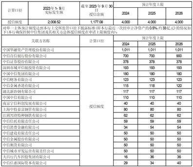 (2)授信额度为合并口径,包含本行子公司对中信集团及其相关方的授信。