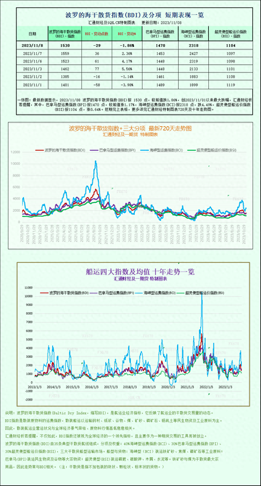 波罗的海干散货指数+三大分项的最新720天走势图、十年走势图等详见汇通财经特制图表: