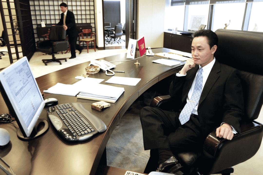 黄光裕的办公室在鹏润大厦的36楼。普通的电梯根本没有36楼的按钮,必须坐专用的电梯,才能见到黄老板本尊。专用电梯口安排了24小时的保安,没有黄老板的首肯谁也不会放行。