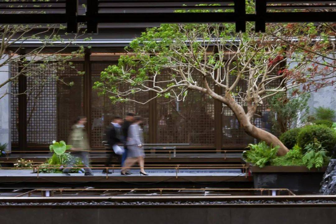 与黑山石对望的朴树,造价就接近百万元。就连其他的绿化树木,也是园林师跑遍了全国九个省严选出来的,光是每一棵的搬运成本就高达5000元。