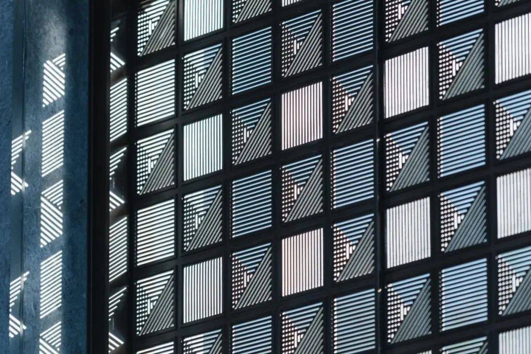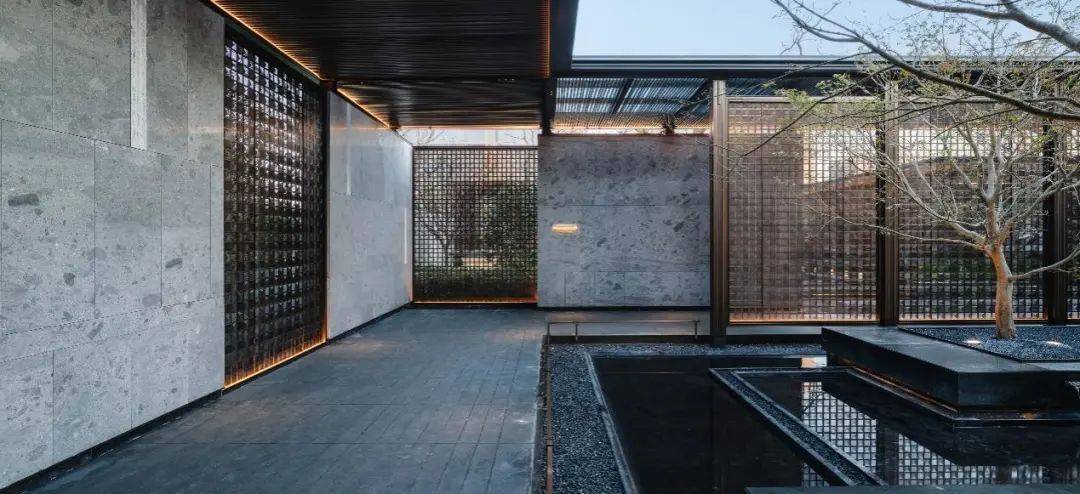 厅堂和轩堂,也在这番赏景过程中依次出现。前者还原出孔子树下讲学的场景,后者则用金属编织的卷帘搭配青绿色彩釉玻璃,构建出一个品茗厅琴的空间。这一切来得如此自然、连贯,富有节奏和层次,把园林艺术的本质抓得入木三分。