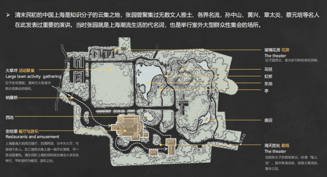 而张园,不仅在艺术造诣上是上海园林的集大成之作,更是因为它承载了这座城市百余年的历史印记——孙中山、黄兴、章太炎、蔡元培等许多历史名人曾在此演讲,无数世界名流也曾驻足于此。张园,担得起“上海园林之首”的头衔。