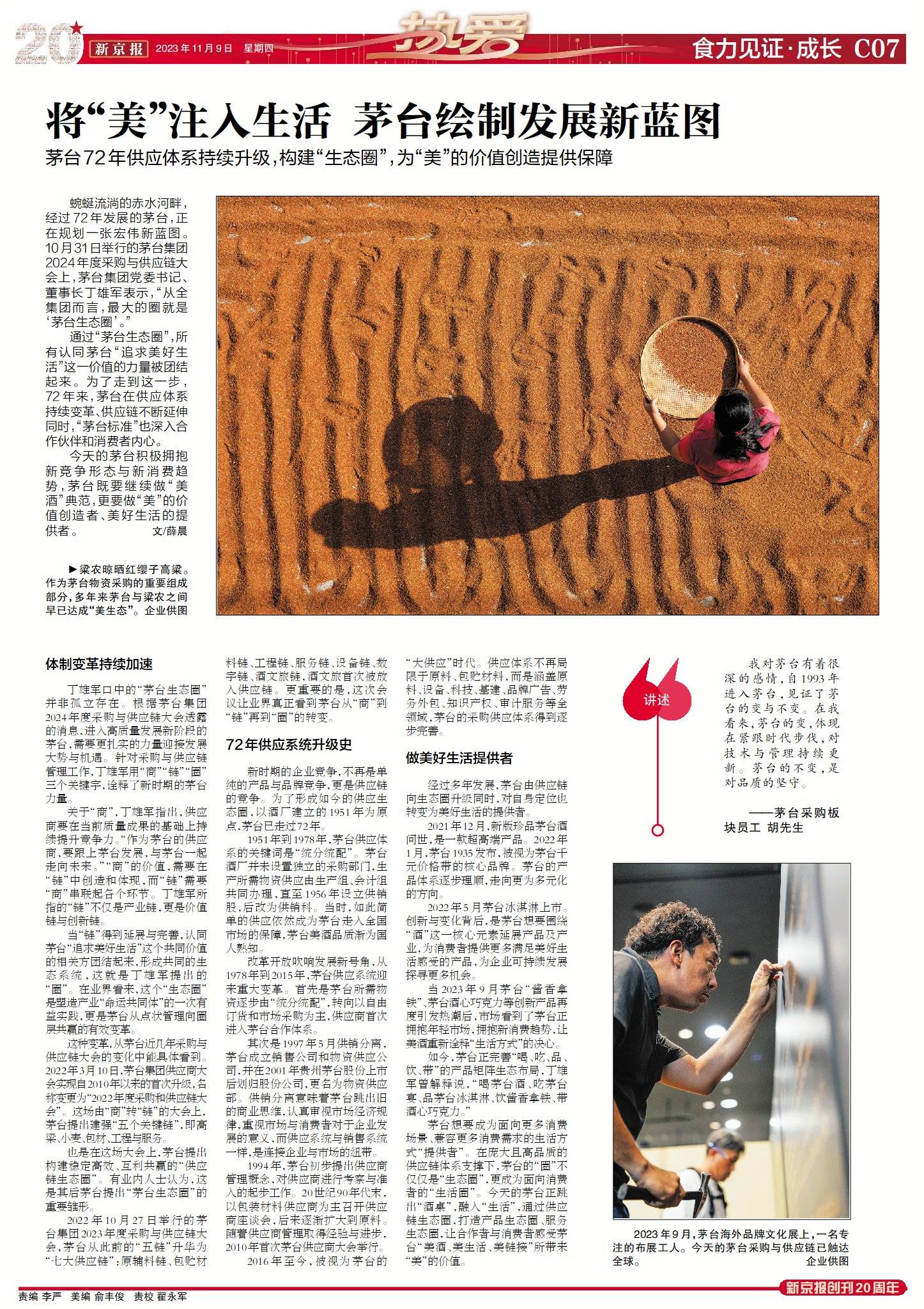 2023年11月9日新京报创刊二十周年系列特刊·第五辑《食力见证》。