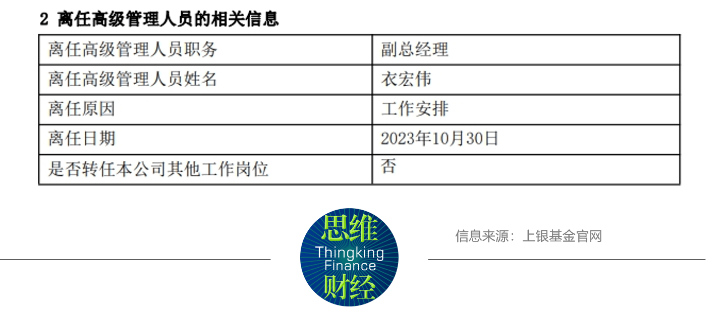 11月1日,上银基金管理有限公司(以下简称“上银基金”)发布公告称,衣宏伟因工作安排辞去副总经理职务。