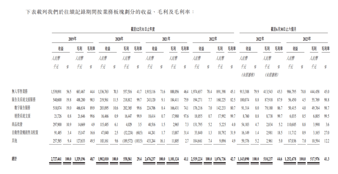 线下出行受限,影响的不只是无人零售业务,没人看广告,广告投放自然变少,2019年—2022年,广告业务营收从5.4亿元下降至1.94亿元。