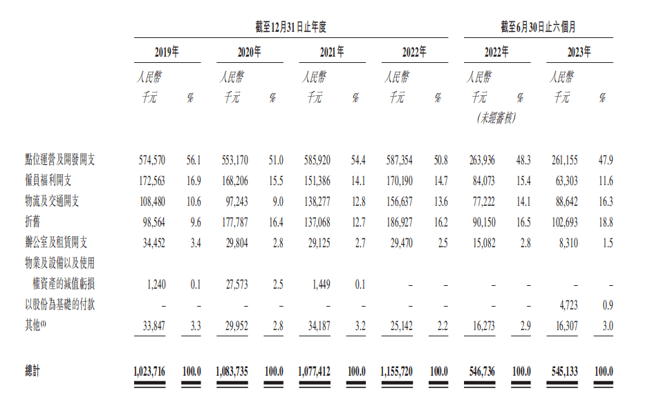 营收在波动,但诸如点位运维、开发、物流等刚性成本却难以压缩。招股书显示,2019年—2022年,友宝的销售及营销开支分别为10.24亿元、10.84亿元、10.77亿元、11.56亿元,呈增长态势,其中点位运营及开发开支占比均在50%以上。