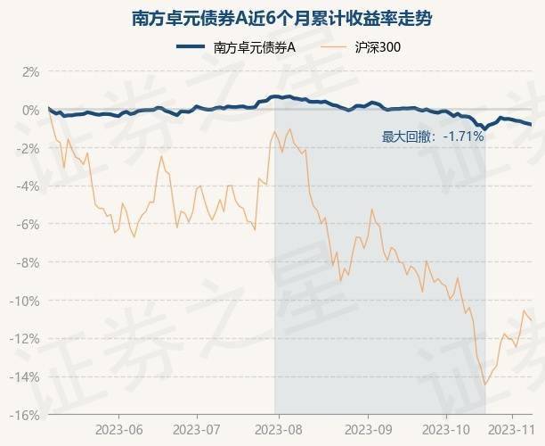 证券之星消息,11月8日,南方卓元债券A最新单位净值为1.0834元,累计净值为1.3074元,较前一交易日下跌0.05%。历史数据显示该基金近1个月下跌0.68%,近3个月下跌1.31%,近6个月下跌0.81%,近1年上涨0.18%。该基金近6个月的累计收益率走势如下图: