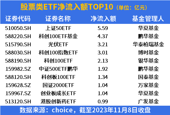 原标题:ETF资金流向:2023年11月8日上证50ETF(510050)净流入5.59亿元,科创50ETF(588000)净流出15.26亿元