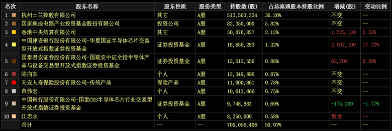 目前,杭州士兰控股持有士兰微36.26%股份,为第一大股东,第二大股东国家集成电路产业投资基金股份有限公司持股5.82%。