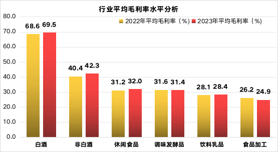 白酒行业平均毛利率逼近70%,食品加工行业毛利率下滑较多