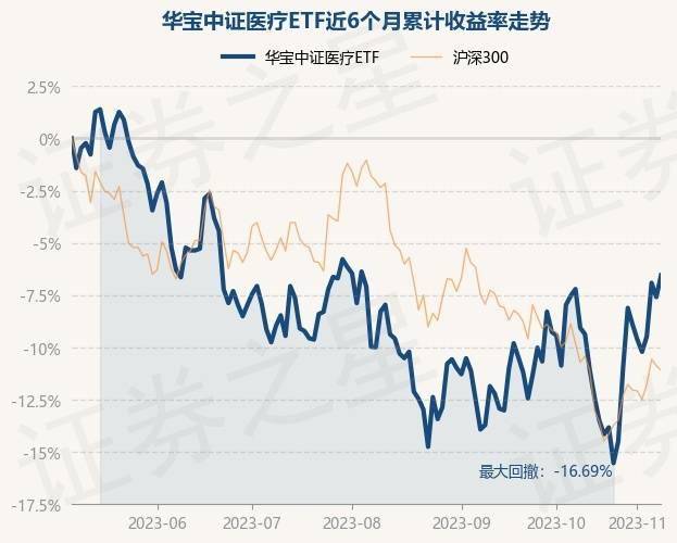 证券之星消息,11月8日,华宝中证医疗ETF最新单位净值为0.4281元,累计净值为1.2843元,较前一交易日上涨1.13%。历史数据显示该基金近1个月上涨3.01%,近3个月上涨3.86%,近6个月下跌6.55%,近1年下跌15.33%。该基金近6个月的累计收益率走势如下图: