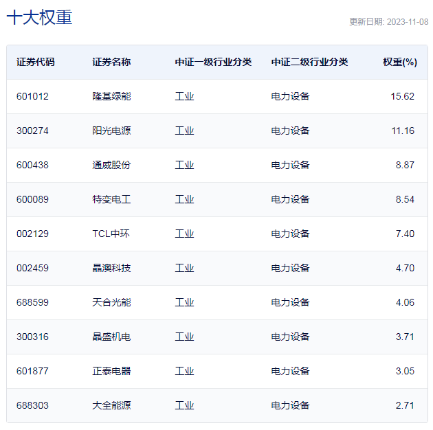 中证光伏龙头30指数从沪深市场业务涉及光伏发电产业的上市公司证券中选取30只规模较大、盈利较好的证券作为指数样本,以反映光伏产业龙头上市公司证券的整体表现。追踪该指数的ETF仅有光伏30ETF一直。另一方面,该指数成分股市值偏大,以隆基绿能为代表的龙头股汇聚,且流动性表现良好;行业方面,该指数行业定位准确,围绕光伏产业。根据Wind一致预测,该指数2023年的一致预测营业收入同比增速为56.90%,一致预测归母净利润同比增速为29.17%,具备未来发展潜力。