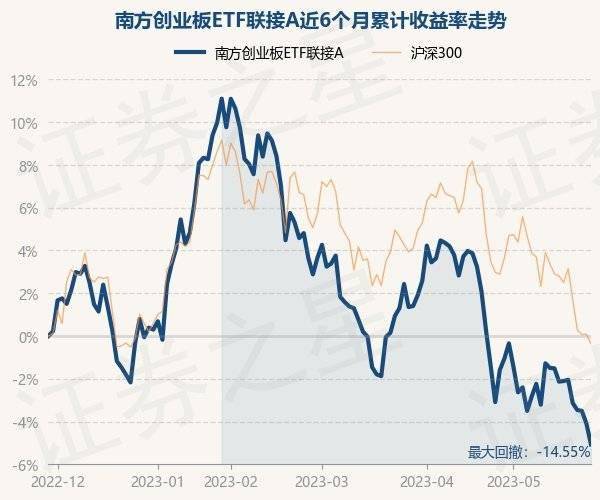 5月29日,南方创业板ETF联接A最新单位净值为1.1096元,累计净值为1.1096元,较前一交易日下跌1.02%。历史数据显示该基金近1个月下跌4.72%,近3个月下跌8.42%,近6个月下跌5.07%,近1年下跌4.0%。该基金近6个月的累计收益率走势如下图: