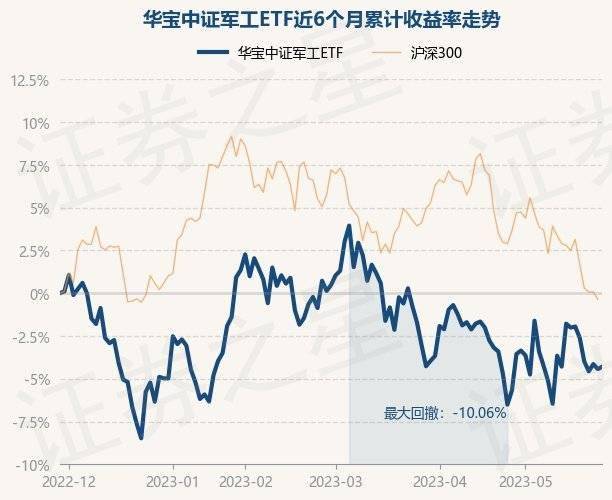 5月29日,华宝中证军工ETF最新单位净值为1.2152元,累计净值为1.2152元,较前一交易日上涨0.15%。历史数据显示该基金近1个月下跌0.99%,近3个月下跌4.79%,近6个月下跌4.31%,近1年上涨2.19%。该基金近6个月的累计收益率走势如下图: