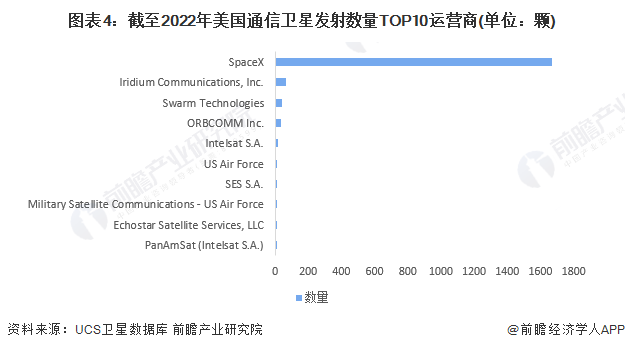 根据UCS卫星数据库,截至2022年5月,美国卫星发射数量TOP10运营商分化差异较大,其中私营企业SpaceX一家独大,通信卫星在轨数量达到1666颗,远超其余竞争者。