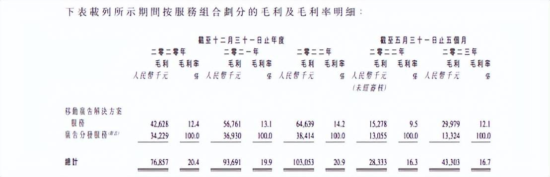 以2023年前五个月为例,公司移动广告解决方案服务录得收入2.47亿元,同比增长53.54%,占比营收高达94.9%,以一己之力扛起了乐思集团的超9成收入来源。