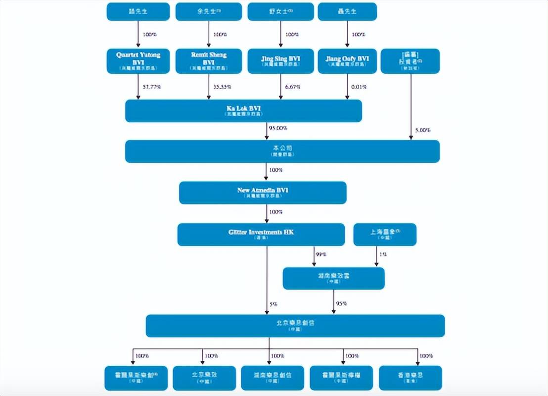 从目前的股东架构来看,赵利兵通过Quartet Yutong BVI持股57.77%;余灿良通过Remit Sheng BVI持股35.55%;舒清通过Jing Sing BVI持股6.67%;聂江通过Jiang Oofy BVI持股0.01%。