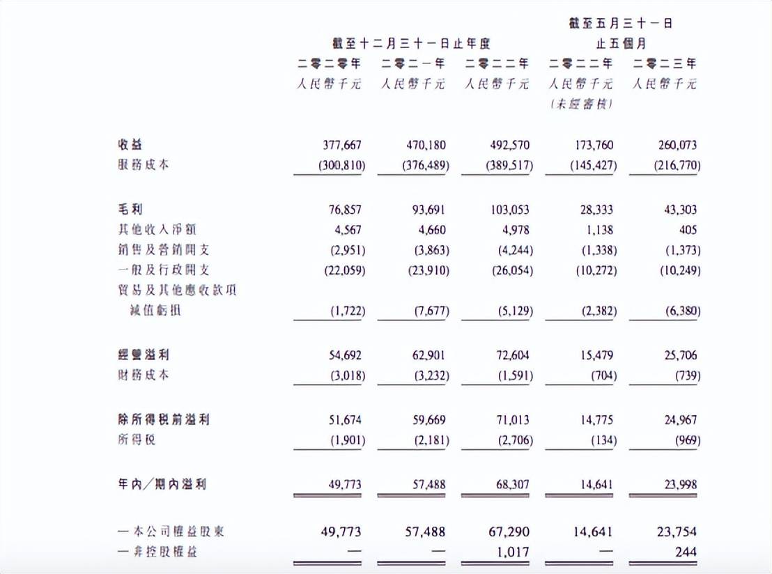 根据招股书,2020-2023年前五个月,乐思集团分别录得营收3.78亿元、4.70亿元、4.93亿元和2.60亿元,营收不断上涨。但2022年,公司营收增速仅为4.89%,远低于2021年的增速24.34%。