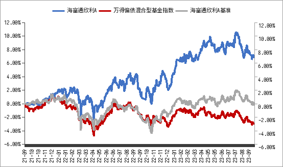 基金定期报告显示,海富通欣利混合成立以来的权益仓位基本稳定于30%-40%之间,A类份额曾连续7个季度收益均战胜业绩比较基准(2021年4季度至2023年2季度),截至2023年9月30日,海富通欣利混合A产品自成立以来累计涨幅7.22%(同期业绩比较基准收益率-0.69%),近1年同类排名前1%(4/719)。(数据来源:基金定期报告、晨星(中国),同类基金为“中国开放式基金 - 沪港深保守混合”分类)
