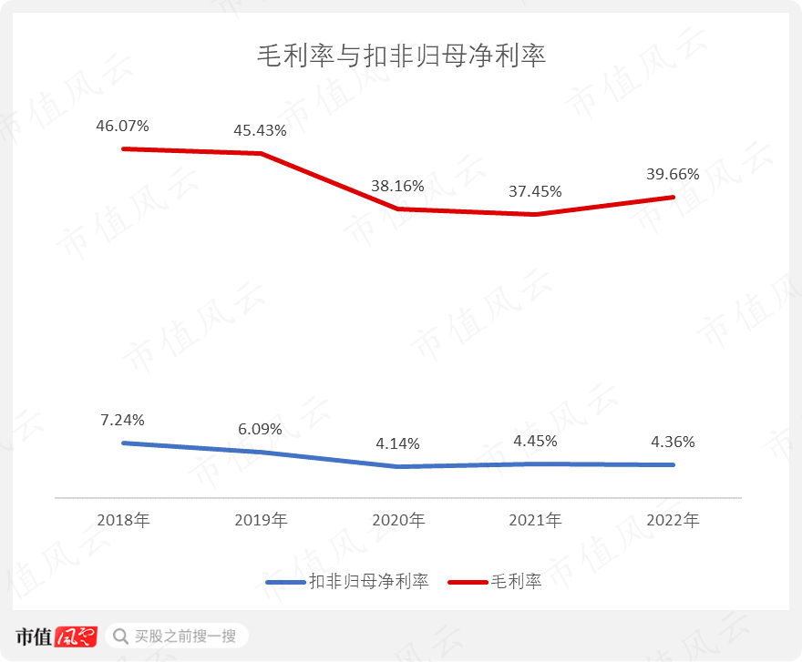 随着营收结构在2020年以后趋于稳定,公司的毛利率和扣非归母净利率也在2020年以后趋于稳定,两者分别保持在38%和4%左右。
