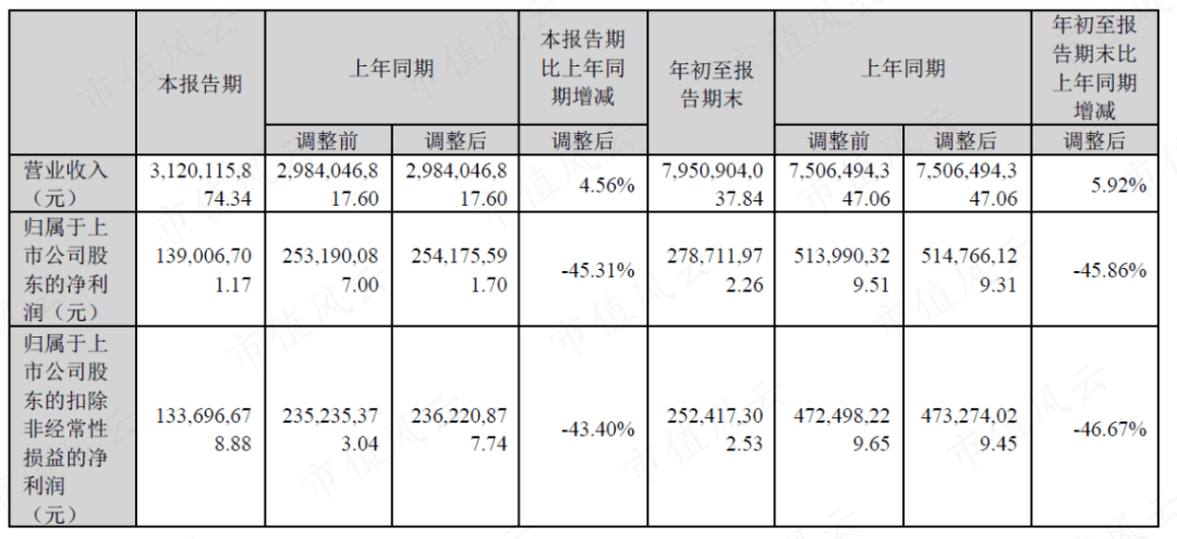 今年前三季度,公司营收同比增长了5.92%,然而扣非归母净利润却同比减少了近50%。