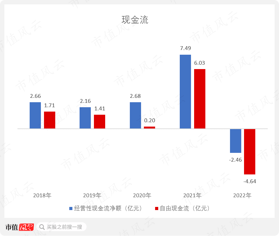 2022年因原材料供应紧张,公司战略性备货增加,这导致经营性现金流和自由现金流均呈流出状态。除2022年,其余年份的经营性现金流净额和自由现金流均为正值。