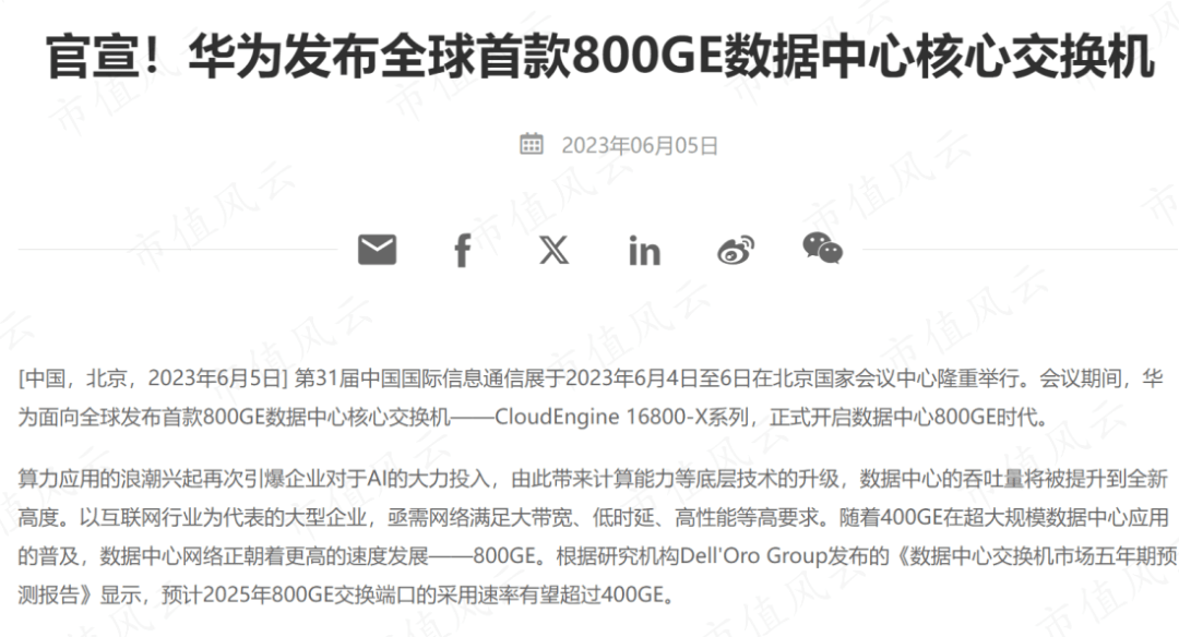 根据公开信息,今年以来华为和新华三均已发布了各自的800G数据中心交换机。公司在高端数据中心交换机领域的研发进度明显要比华为和新华三慢。