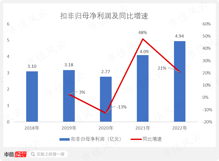 同期扣非归母净利润从3.1亿元增长至4.94亿元,期间CAGR为12%。