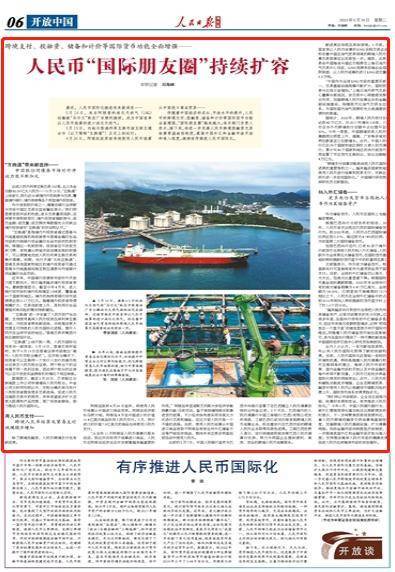 新进展还体现在具体领域。3月底,中国首单以人民币结算的LNG采购交易达成,标志着中国在油气贸易领域的跨境人民币结算交易探索迈出实质性一步。据悉,此单交易由中国海油与道达尔能源在上海石油天然气交易中心完成,LNG资源来自海合会国家阿联酋,以人民币结算的进口LNG成交量约6.5万吨。