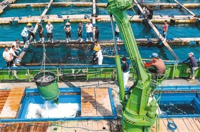 今年以来,海南省持续提升贸易自由化便利化水平,加快提升外贸企业应对汇率风险能力,优化跨境贸易人民币结算环境,助力外贸保稳提质。图为渔民在海南万宁大洲岛海域装运出口海外的章雄鱼苗。张 茂摄(人民视觉)