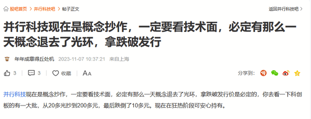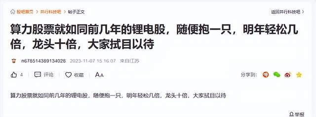 对此,在投资平台股吧上不少股民给出反映。ID名为“年年成章得丘处机”的股民表示“并行科技现在是概念炒作,要看技术面,有一天概念会褪去光环。”也有股民对算力股表示乐观,认为“随便抱一只算力股票,可以轻松涨几倍。”