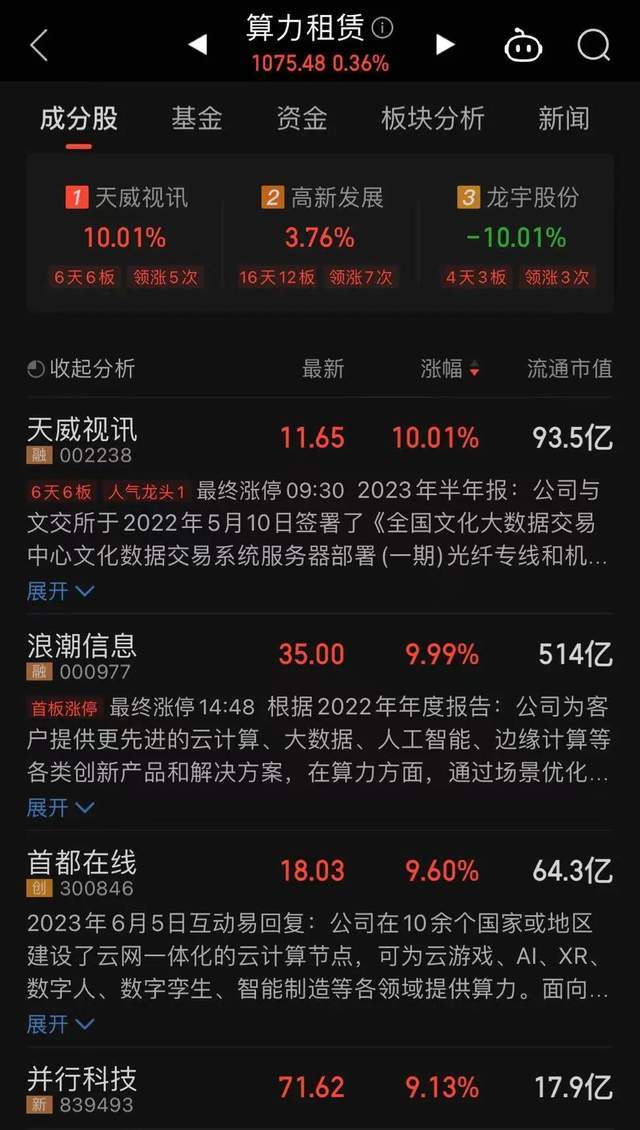事实上,近几年,国内算力供不应求。国泰君安表示,算力需求持续爆发。据东北证券研究所,算力租赁行业目前供求矛盾升级,将进入新一轮涨价周期。从二级市场来看,算力概念大热,截止11月9日收盘,浪潮信息涨停,首都在线股票上涨9.6%,其中天威视讯已连收6个涨停板。