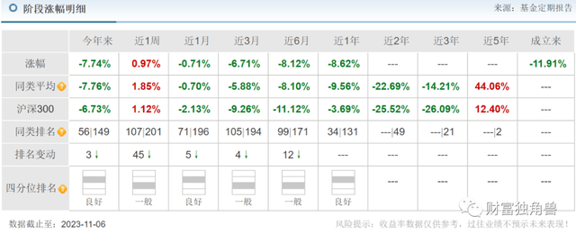 然而,笔者回顾宁德时代2021年4季度股价,当时宁德时代股价正处于每股670-690元最高价,该基金从2021年4季度持有宁德时代到今年3季度,宁德时代的股价也从670多下跌至每股180元。2021年10月8日-2023年11月8日宁德时代股价跌幅61.80%。
