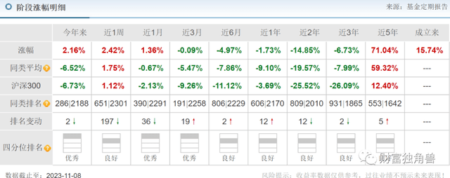 据天天基金网显示,中银量化精选混合A成立于2016年12月13日,基金由赵志华单独管理,截至3季度末基金规模仅剩0.64亿元。截至11月8日基金单位净值1.1574,自该基金成立来收益率15.74%,今年来收益率2.16%,近6月来收益率-4.97%,近1年来收益率-1.73%,近2年来收益率-14.85%,近3年来收益率-6.73%。