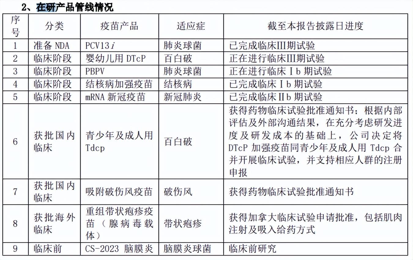 康希诺称,公司推进了一系列创新疫苗的研发,研发管线涵盖预防脑膜炎、埃博拉病毒病、百白破、肺炎、结核病、新型冠状病毒(COVID-19)、带状疱疹等多个临床需求量较大的疫苗品种。