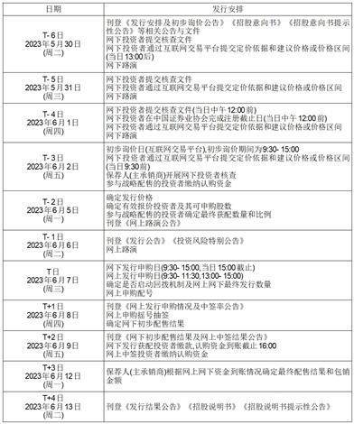 发行人和保荐人(主承销商)拟于2023年5月30日(T-6日)至2023年6月1日(T-4日),向符合要求的网下投资者进行网下推介,路演推介内容不超出《招股意向书》及其他已公开信息范围,不对股票二级市场交易价格作出预测。推介的具体安排如下: