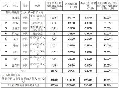 注:上述表格中包含首次授予部分中10名本期个人层面归属比例为0%的激励对象。