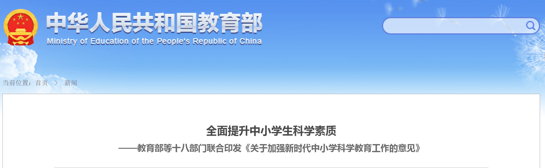 教育部校外教育培训监管司负责人就《教育部等十八部门关于加强新时代中小学科学教育工作的意见》答记者问
