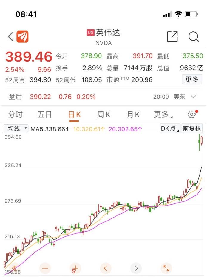 上周,由于对处理AI任务的数据中心芯片的强烈需求,英伟达大幅提高了对本季度的业绩指引,比分析师的估计高出近40亿美元。业绩指引的提高使该股创下历史新高,并使英伟达的估值接近1万亿美元,这还是芯片业中首次有公司市值达到这一高度。